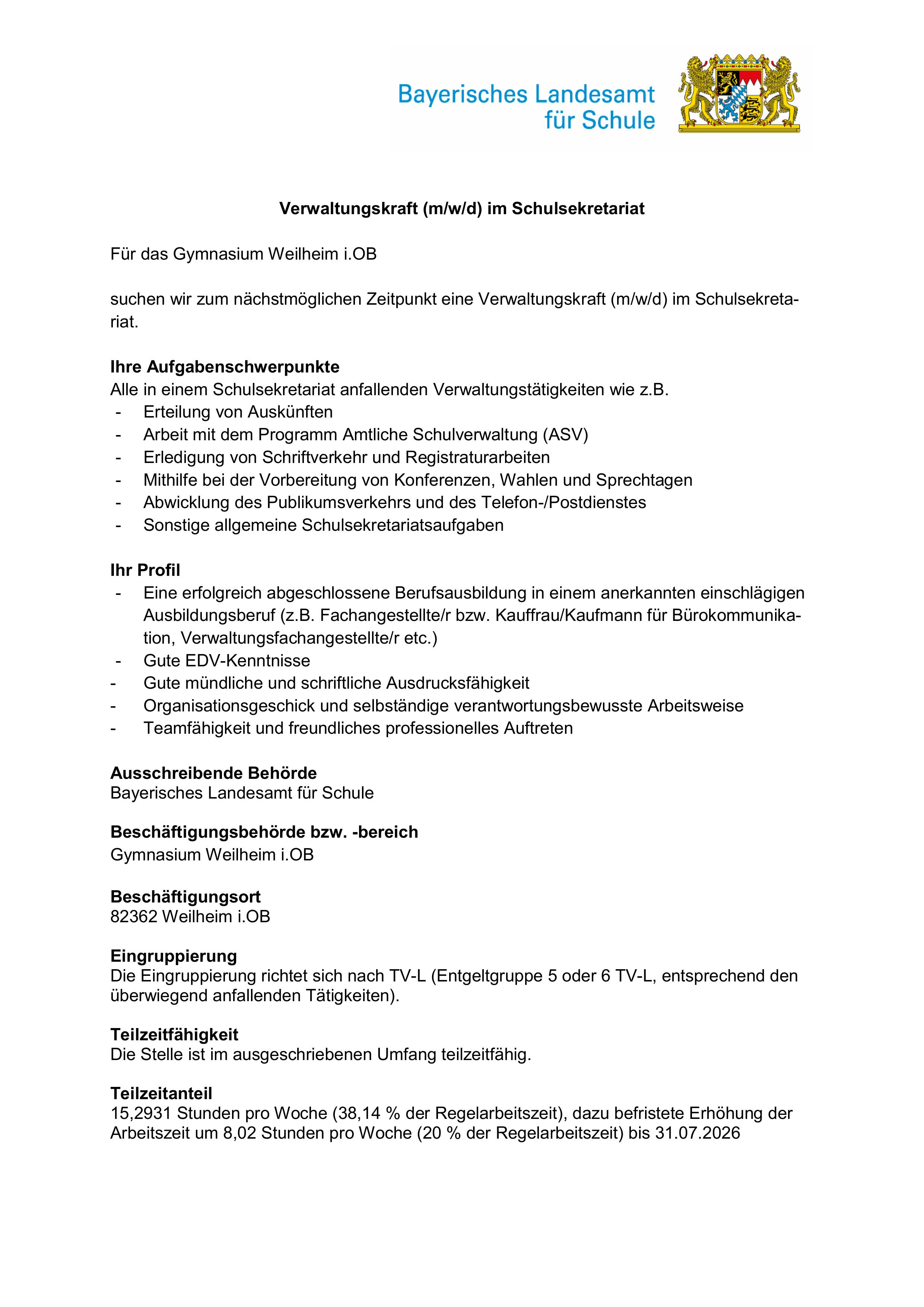 Verwaltungskraft (m/w/d) im Schulsekretariat